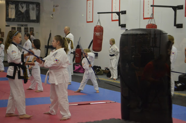 At karate, Gigi met us to hand off Grey's clothes and equipment to us and offered (like a total professional Grandma) to take Violet during class so I could have some peace.  Sweet Lord, thank you for Gigi.  I got to watch Grey all during class without the whines and tugs of a curious and bored one year old.  Hallelujah, for real.