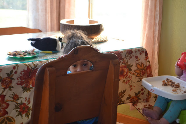 Lainey bug arrived for another playday with us and Grey came clean about having a splinter in his hand from the playground at school the day before.  This kid hates splinters, no, not the actual splinter, rather the removal of the splinter.  hates, hates, hates.  So it was a solid forty minutes of crying and fussing about the thought that removing the splinter would be painful.  that's a lot of patience from a mumma at 7am in the morning.