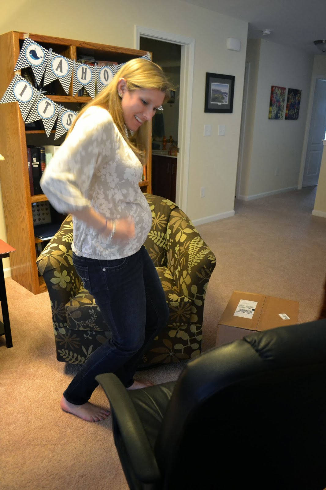Grandma, Aunt Joce, and a surprise out-of-town guest all arrived first (Allison's godmother came all the way from PA as a surprise!). We got some photo ops in front of our Ahoy! It's a Boy! banner and used our 'guestbook' life saver as an adorable belly frame:)