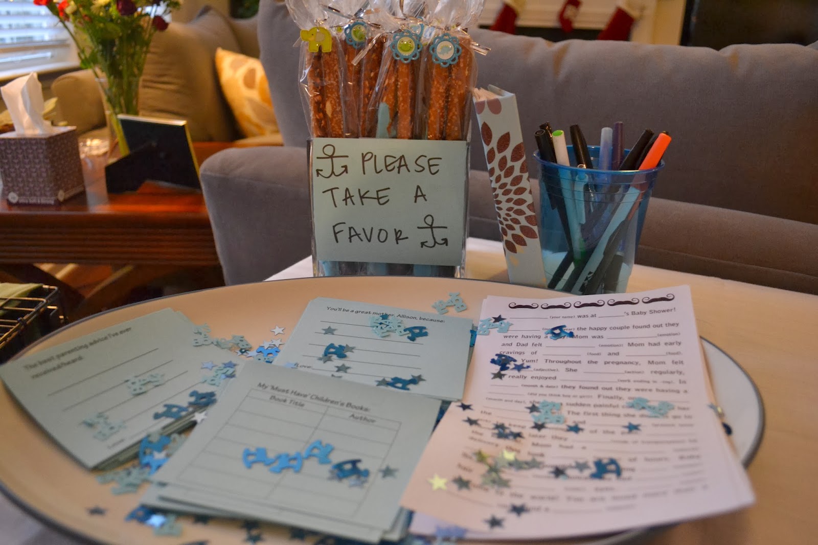 Since Al and Matt are expecting a boy, we took a cue from Allison's Dad's sailboat to settle on a sailing theme for the shower.