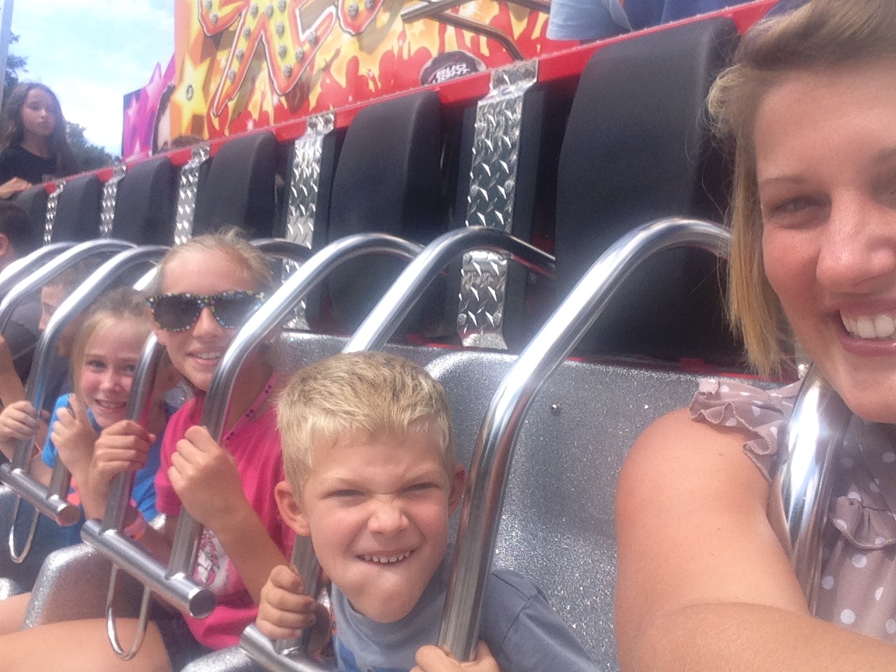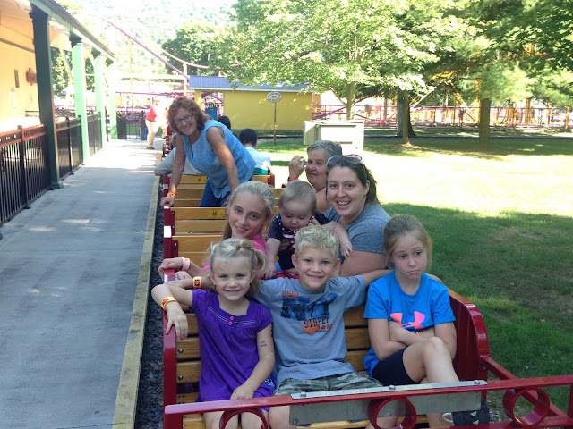 We spent a beautiful day at Delgrosso's amusement park with Mimi (their great grandma), Aunt Eileen and our cousins riding rides and visiting the water park. It was the first time Grey got the guts to ride on an actual big kid ride (thanks to having his brave older cousins Ariel and Gracie beside him) and there was no turning back after that. He rode the Rockstar ride about sixteen times that day, plus a hand full of other must-be-at-least-42inches-tall rides. Violet and Ben had their first taste of kiddie rides and quickly became obsessed. Their little smiles and shouts of pure joy were so infectious. Oh, those two! It was such a fantastic day and I'm so grateful that our kids have such wonderful cousins to grow up with.