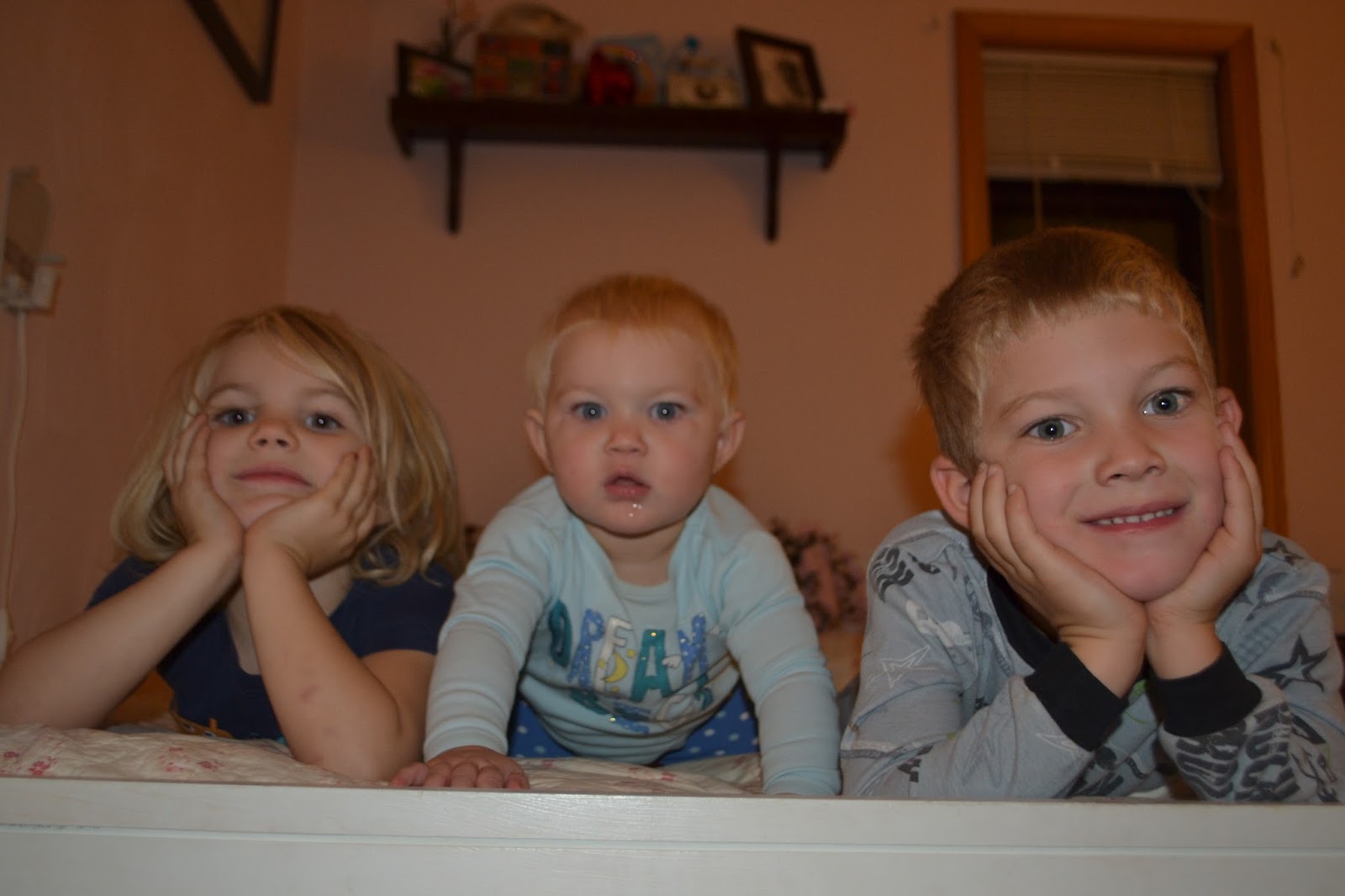 I was hopeful that the kids would be asleep by the time we got home (about 35 minute drive home), and they all were, until it was time to transport them all to the house...of course. All three woke up but were happy to get some hugs and kisses from Daddy who had only arrived home a few minutes earlier from work.